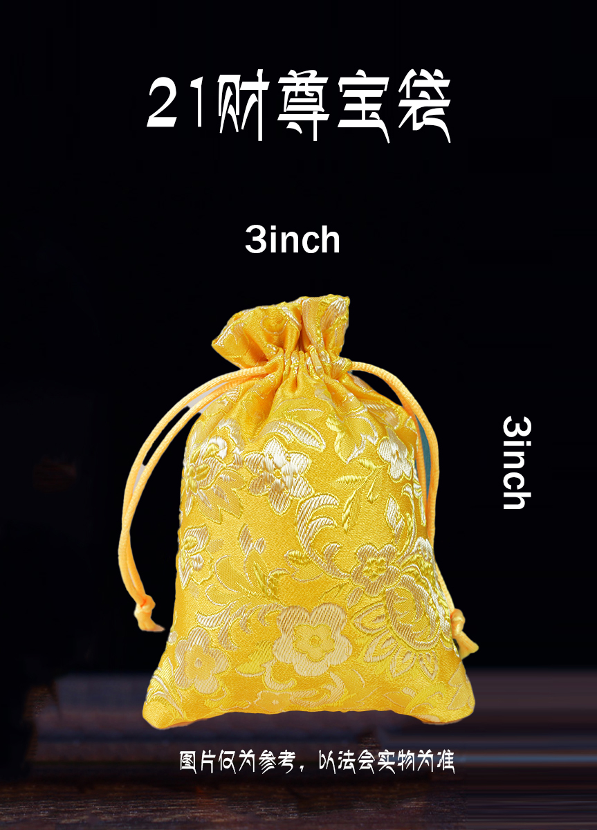莲师所赐予的21财神诸尊修法:能令众生财富如雨水降于林木般,使其获得润泽增广。此次以很多殊胜缘起物,圣物装藏宝袋,增长福禄财运。财神宝袋要等法王在5月14日21财尊灌顶法会开光加持后才可领取。